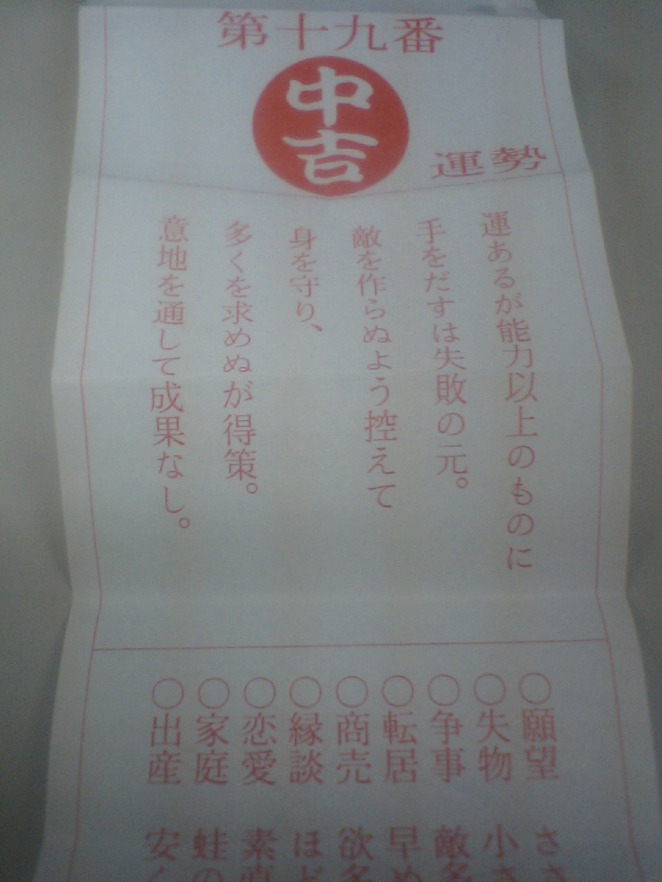 結果は中吉でした。