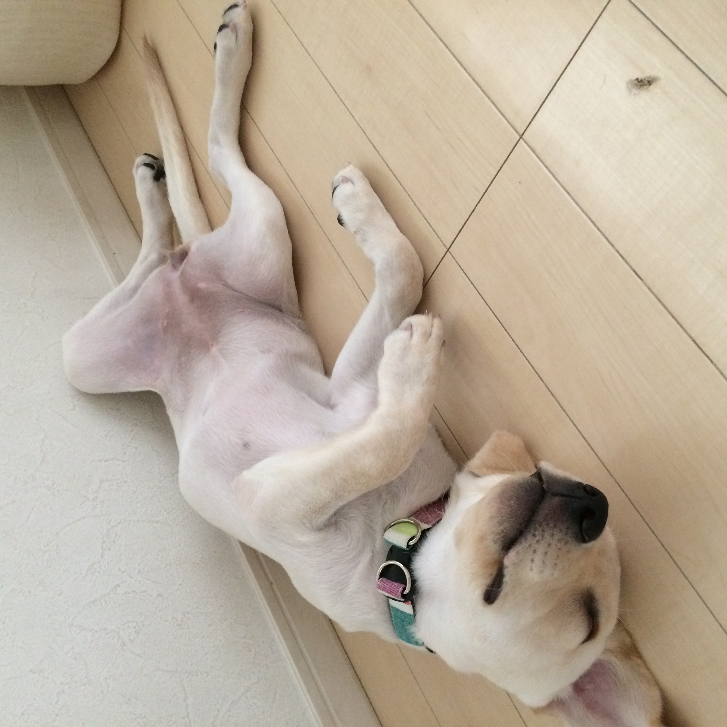 リビングでドデンと寝転がり、尻尾を千切れそうに振り、全身で喜びを表現するクロエちゃん、