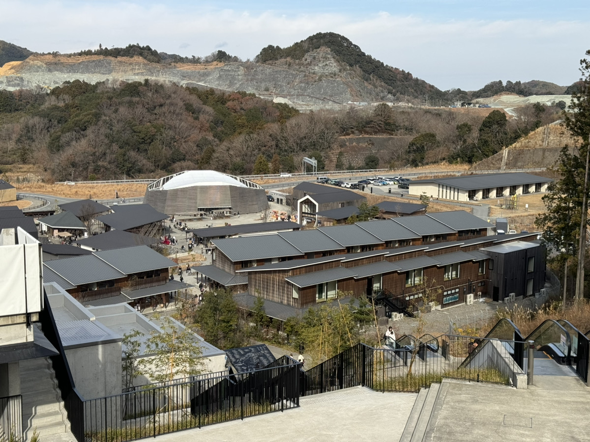 VISONは三重県の中部に位置する多気町にあり、ちょうど東の伊勢神宮と南の熊野古道に行くルートの中間にあります。高速道路のインターチェンジ周辺の山を開拓し、敷地面積は119万平米、なんと東京ドーム24個分になります。